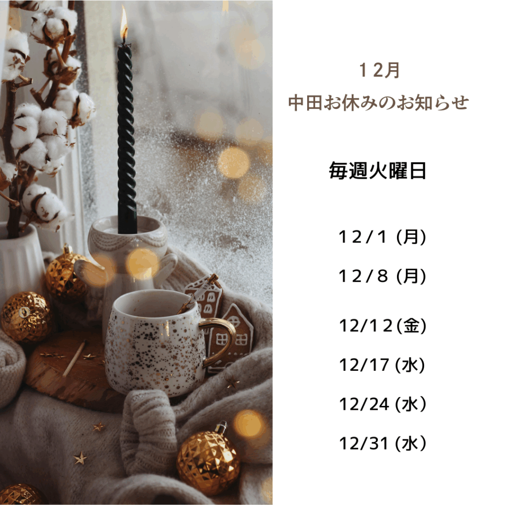 中田の12月のお休みは下記の通りです。