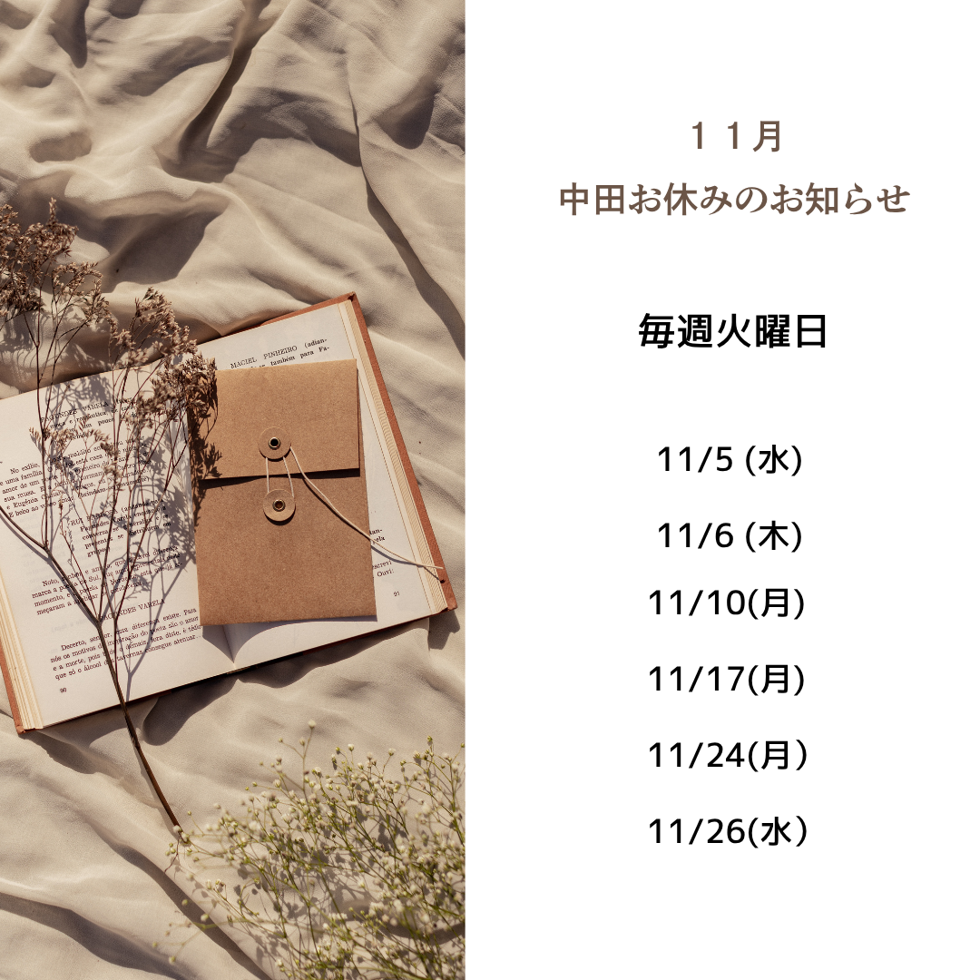 いつもso/soにご来店いただきありがとうございます 画像は11月の定休日になります。 只今中田のご新規のご予約は停止中でございます。 予約に空きができた場合は…