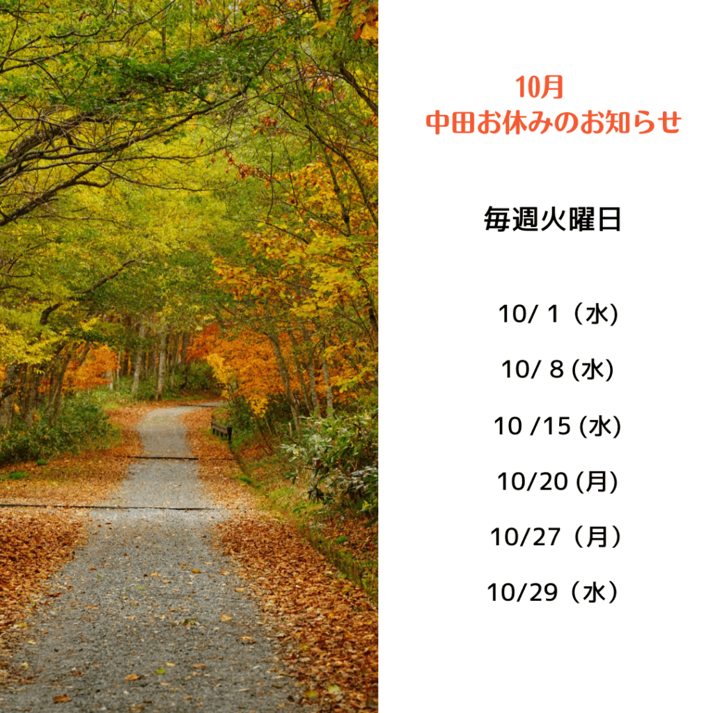 こんにちは いつもso/soにご来店いただきありがとうございます! 遅くなってしまい申し訳ございません。 下記が森田の10月のお休みになります。 10/9、10…